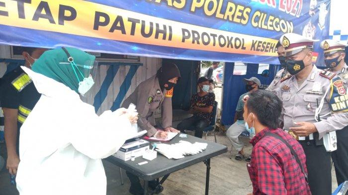 TRIBUNBANTEN.COM, CILEGON - Jajaran Polres Cilegon melakukan pemeriksaan Rapid Test Antigen dan pemberian masker secara gratis di Pos Lantas Tangguh yang berada di Pos Lantas Merak, Rabu (17/2/2021).