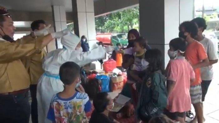 Aksi bagi-bagi uang yang semula berjalan aman seketika nyaris ricuh saat puluhan pengungsi menyerbu wanita yang datang menggunakan alat pelindung diri (APD) itu.