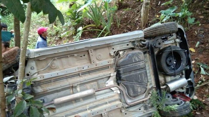 Sebuah mobil Toyota Kijang Innova terperosok ke jurang. Mobil itu membawa sekitar empat orang.