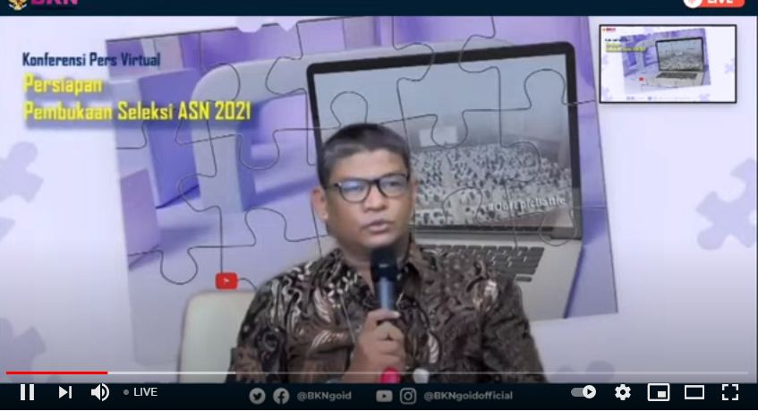Informasi seleksi CPNS 2021 dan PPPK 2021 disiarkan langsung melalui channel YouTube BKNgoidOfficial.