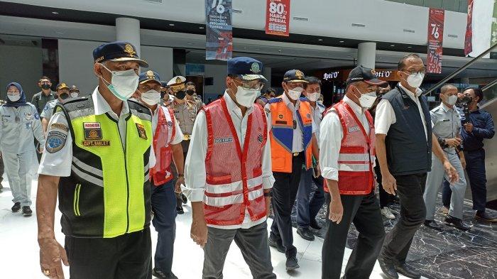 TRIBUNBANTEN.COM, KOTA CILEGON - Dua menteri dan Kepala Korlantas Polri Irjen Pol Firman Shantybudi mengunjungi Pelabuhan Merak, Kota Cilegon, Sabtu (11/12/2021).