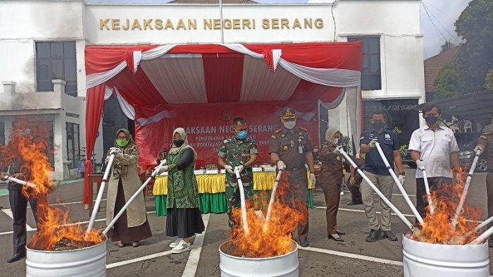 Upaya pemusnahan barang bukti hasil sitaan itu digelar di depan Kantor Kejaksaan Negeri Serang, pada Rabu (15/12/2021).