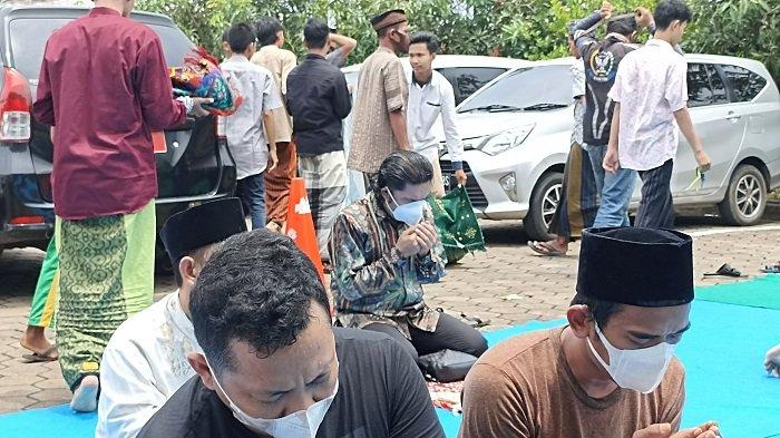 Di dalam area masjid tampak terlihat penuh, ia pun mengambil shaf di area lapangan masjid.