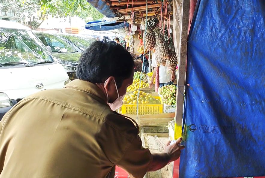 Petugas Disperindag sudah memberikan cat kuning lapak pedagang yang merupakan tanda akan dibongkar.