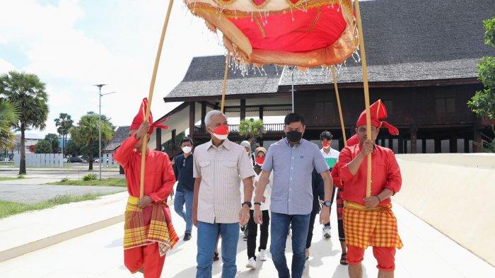 Beberapa tokoh adat menyambut kedatangan Ganjar di depan museum.