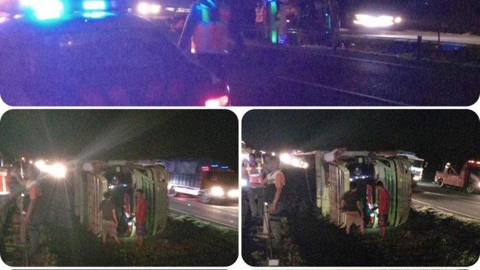 TRIBUNBANTEN.COM, KOTA SERANG - Truk bernomor polisi BG 8201 IG terguling di Tol Tangerang-Merak Km 53, Jumat (13/5/2022) sekitar pukul 23.50.