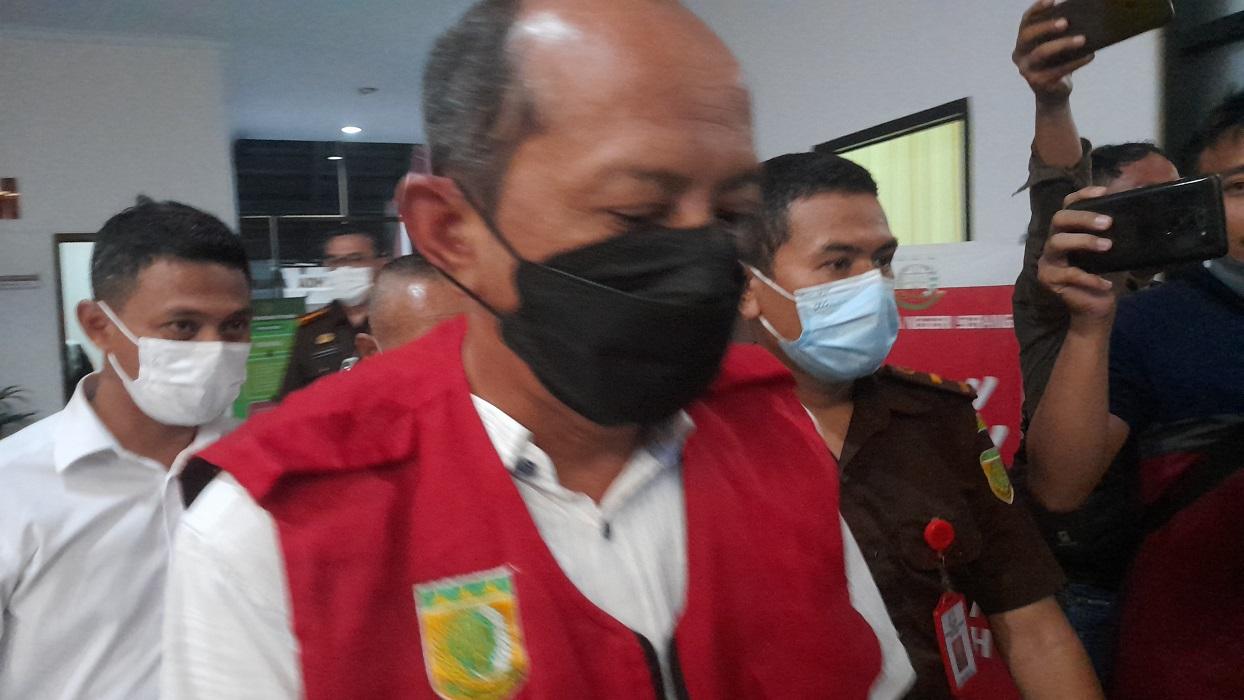 Menurut pantauan TribunBanten.com, dua tersangka keluar dari ruangan Pidsus Kejari Serang mengenakan rompi merah.