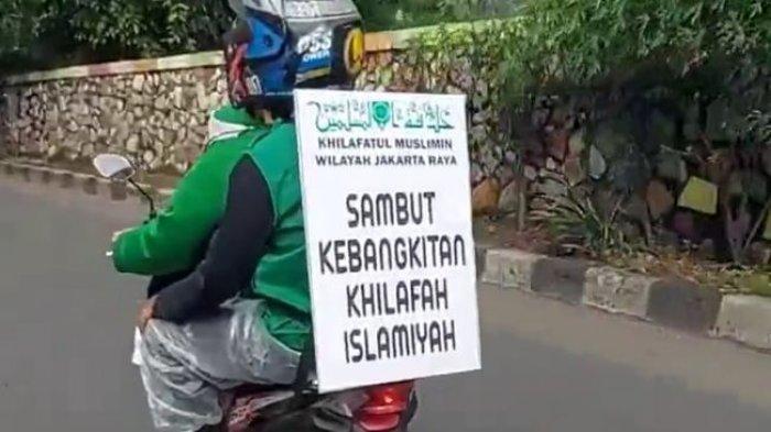 TRIBUNBANTEN.COM - Beredar video pengendara motor melakukan konvoi sambil membawa poster dan bendera Khilafatul Muslimin.