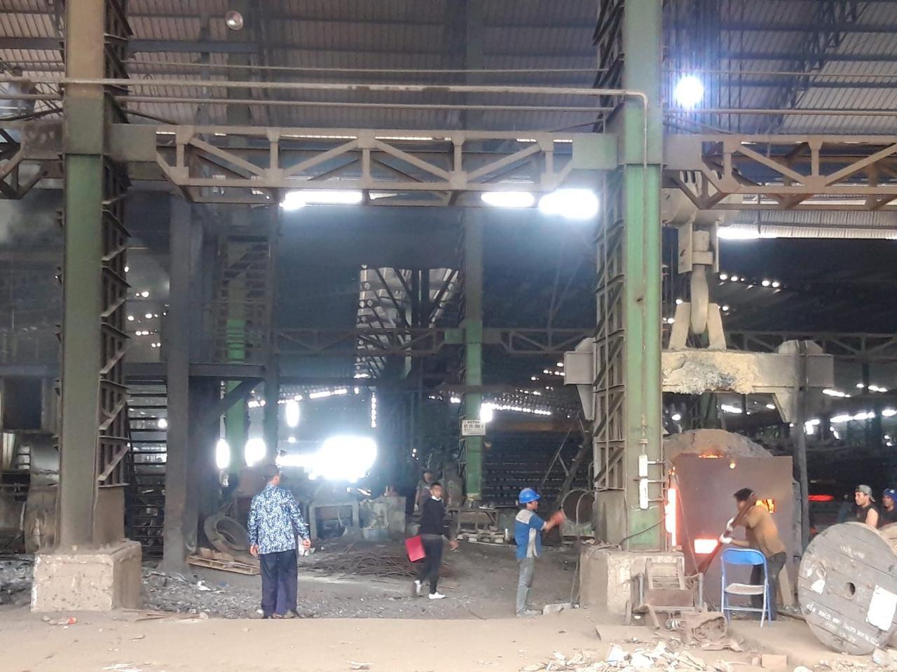 Pabrik itu memproduksi besi dari peleburan besi bekas.