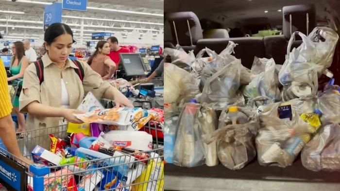 "Ini belanjaan dua troli buat tiga hari doang, kayak buat berminggu-minggu," ujar sosok yang mengoperasikan kamera, Hasna.