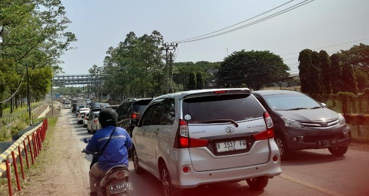 Antrean kendaraan ini terjadi tepatnya mulai dari Jalan Lingkar Selatan, Ciwandan, hingga Pasar Anyer, Kabupaten Serang atau sepanjang 5,7 kilometer.