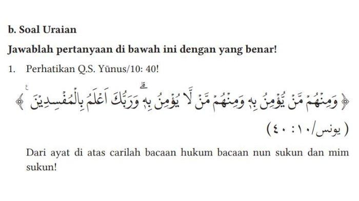 Siswa akan diminta menjawab soal: "Perhatikan Q.S. Yūnus/10: 40! وَمِنْهُمْ مَنْ يُؤْمِنُ بِهِ وَمِنْهُمْ مَنْ لَا يُؤْمِنُ بِهِ ۚ وَرَبُّكَ أَعْلَمُ بِالْمُفْسِدِينَ