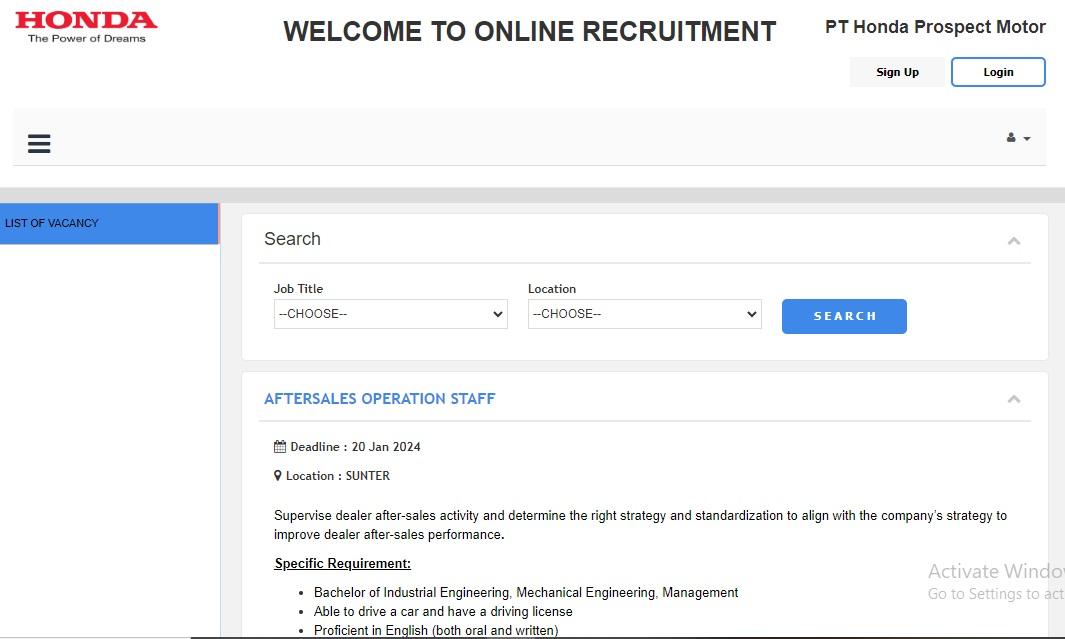 Bagi anda yang berminat dapat mendaftar di laman website PT Honda Prospect Motor, https://www.hpm.co.id/career/.