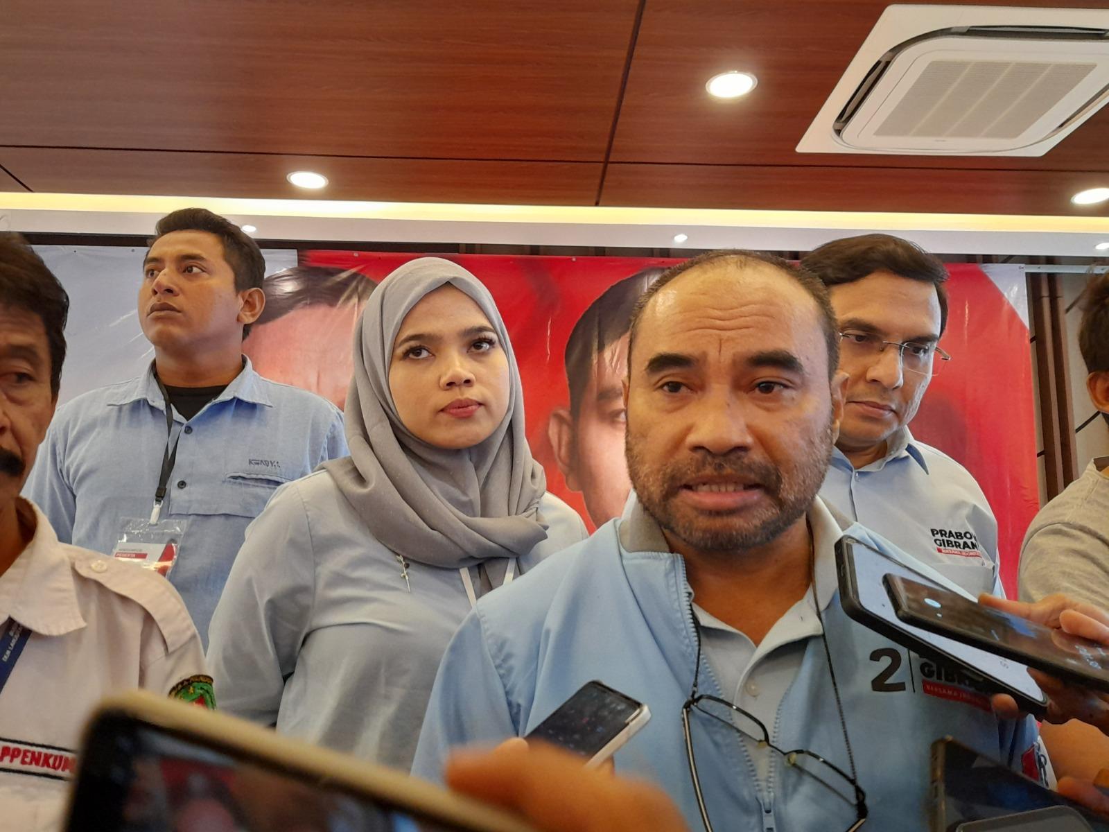 Koordinator Relawan TKN Prabowo-Gibran, Haris Rusly Moti angkat bicara soal baliho Prabowo-Gibran yang dipasang di Terminal Pakupatan, Kota Serang