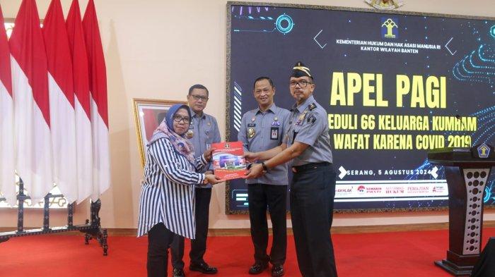 TRIBUNBANTEN.COM, SERANG - Kanwil Kemenkumham Banten memberikan santunan kepada keluarga pegawai korban virus corona saat pandemi Covid-19 pada 2019, Senin (5/8/2024).