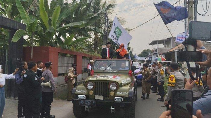 Dengan menaiki mobil Civilian Jeep Indonesia (CJID) berwarna hijau army, Isro-Uyun dikawal oleh ratusan massa pendukung.