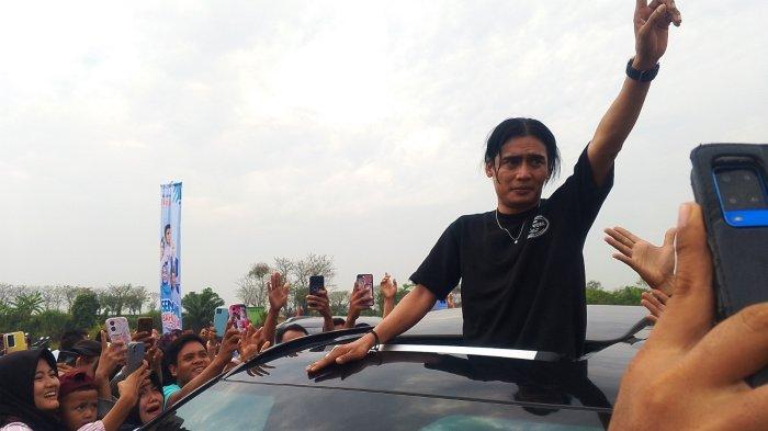 Gaya Charly Setia Band Sosialisasikan Zakiyah-Najib di Pilkada Serang, Buka dan Lempar Baju ke Warga