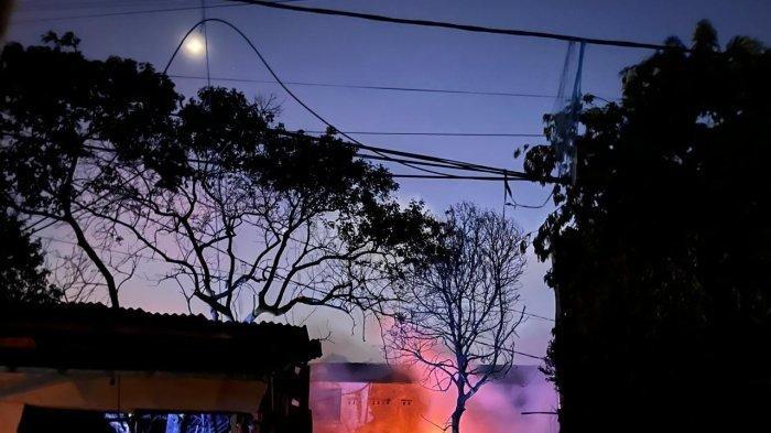 Kebakaran yang melanda lapak pengepul barang rongsok, di Gang Bambu, Pondok Kacang, Pondok Aren, Tangerang Selatan belum bisa dipadamkan.
