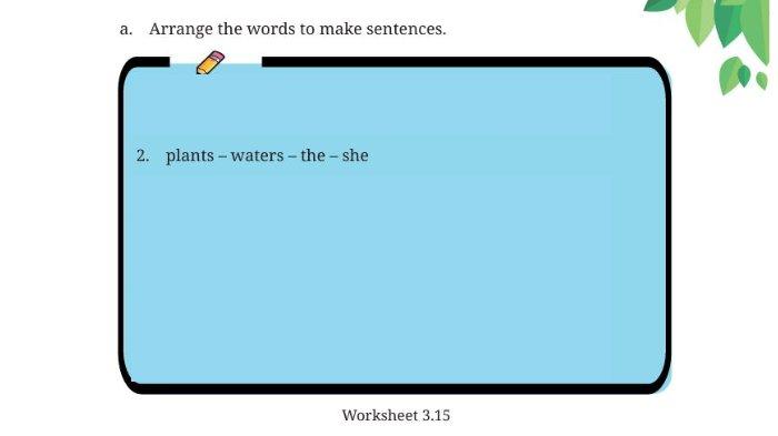 Pada Section 3 - Language Focus Worksheet 3.15 soal nomor 2 halaman 123, siswa diminta untuk menyusun kata-kata berikut menjadi sebuah kalimat.