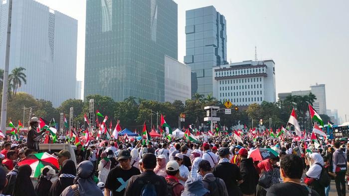 Isi 11 Tuntutan yang Disampaikan Massa, Dalam Aksi Bela Palestina di Kawasan Patung Kuda Jakarta