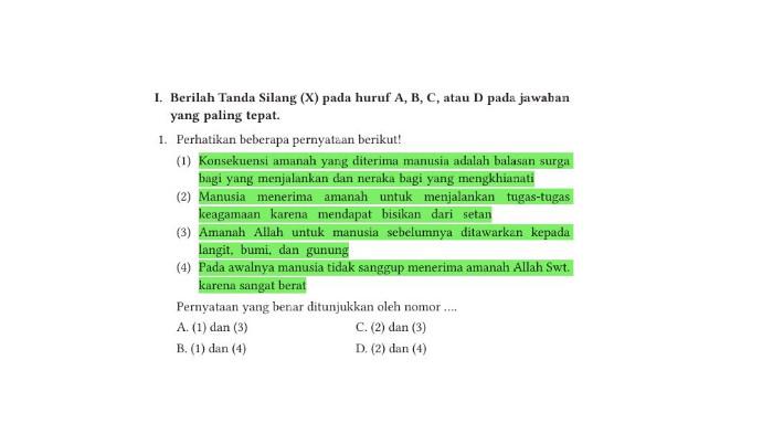 Kunci Jawaban PAI Kelas 8 Kurikulum Merdeka Halaman 76, Pernyataan yang Benar Ditunjukkan . .