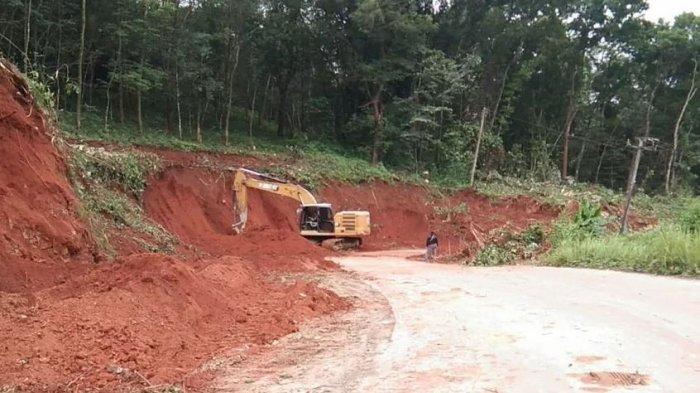 Jalan Raya Gunungkencana tepatnya di Blok Curahem, Desa Sukanegara, Kecamatan Gunungkencana, Kabupaten Lebak yang longsor kini sedang dalam perbaikan.