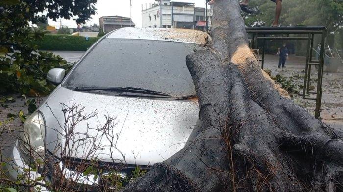 Pohon Setinggi 10 Meter di Pinang Kota Tangerang Tumbang: Mobil Mobilio Jadi Korban!