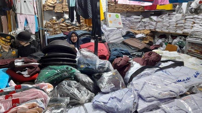 Toko yang buka hingga pukul 17.00 itu diserbu pembeli yang mencari seragam sekolah.
