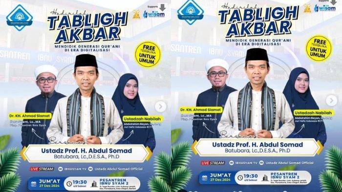 Pendakwah Islam Indonesia, atau Da'i kondang Ustaz Abdul Somad (UAS) bakal mengisi Tabligh Akbar di Kota Cilegon, hari ini, Jumat (27/12/2024) malam.