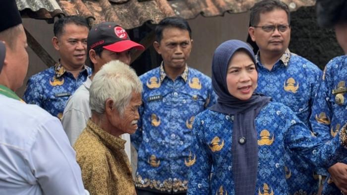 Bupati Serang Ratu Rachmatuzakiyah langsung mengunjungi rumah warga yang roboh terkena angin puting beliung yang berlokasi di Desa Bojong Pandang.
